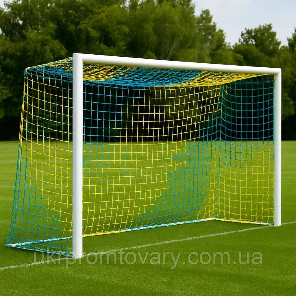 Сітка футбольна для футбольних воріт «ЕКОНОМ 1,5» жовто-синя (комплект із 2 шт.)