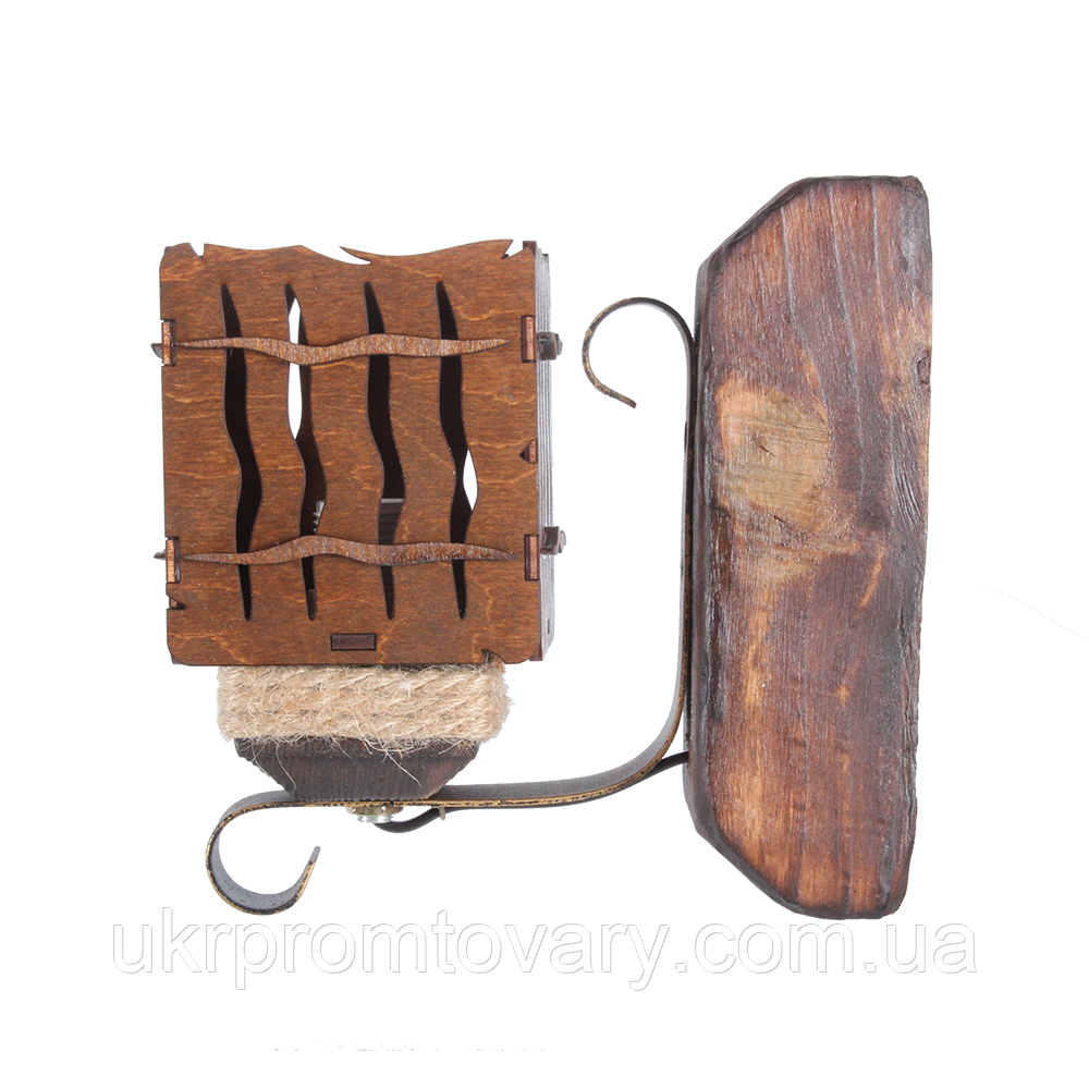 Бра настінне з одним коричневим дерев'яним плафоном серії "MINI шуба". 100% ручна ексклюзивна робота. Виготовлено з натуральних матеріалів.Продаж гуртом і в роздріб. Доставка товару по всій Україні.